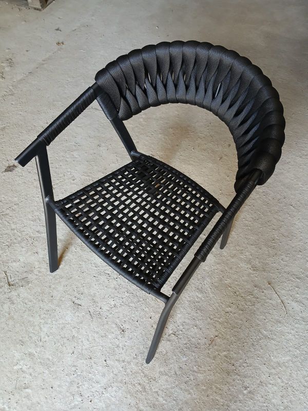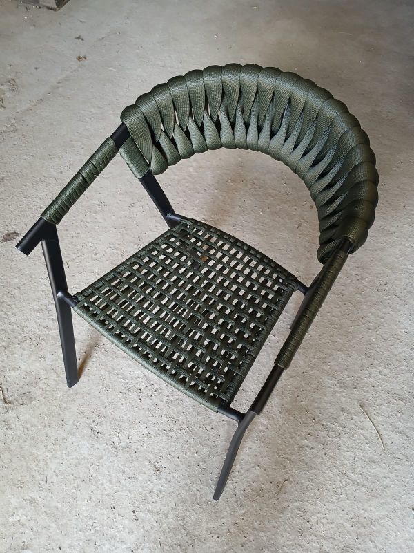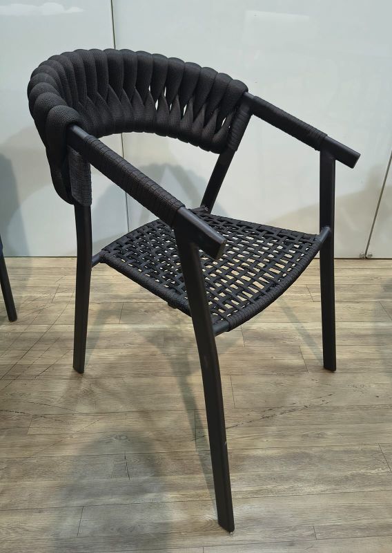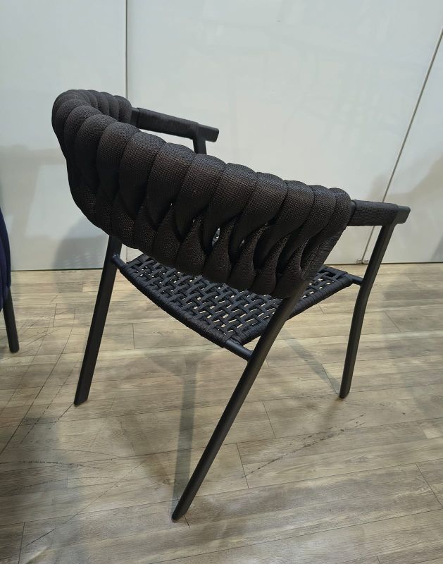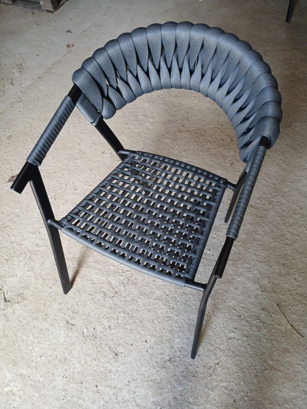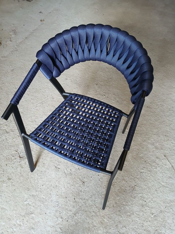 revestisa no assento e braços em corda náutica e encosto tricô náutico.